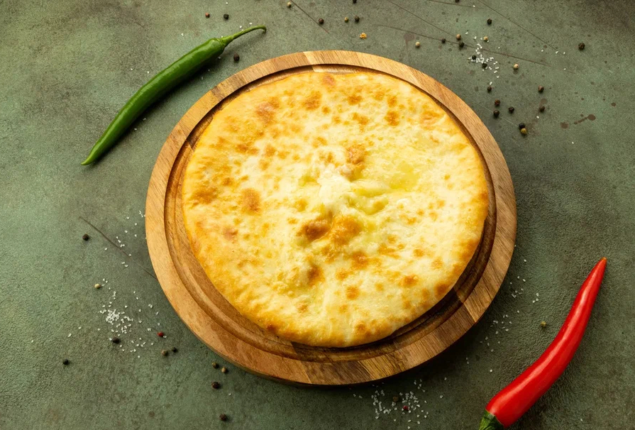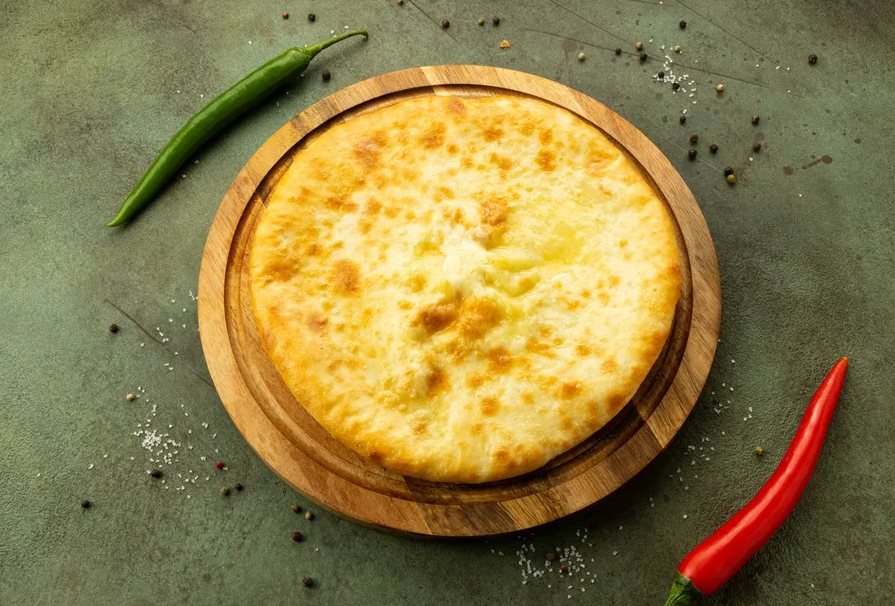 Тесто, сыр имеретинский, сыр сулугуни, масло растительное. Открытый хачапури.