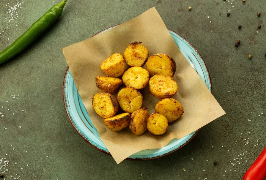 Обжаренный на мангале молодой картофель-бэби.