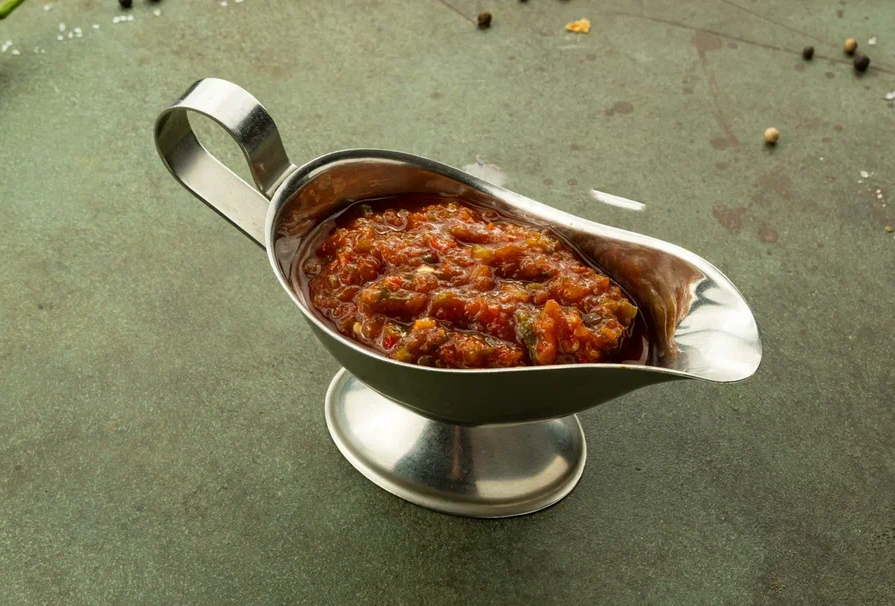 Традиционный грузинский томатный соус с кинзой, чесноком и специями. Идеально подходит к мясу и хачапури, добавляя блюдам пряную насыщенность и лёгкую остринку.